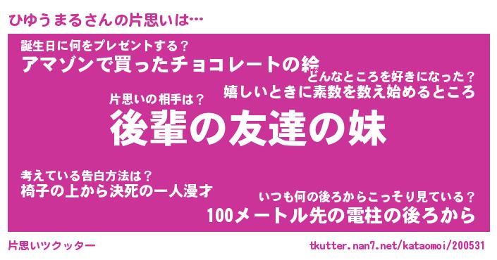 | ファンタジー風あだ名 | 『ヒユフェル』『エターナルヒユウマルー』 |