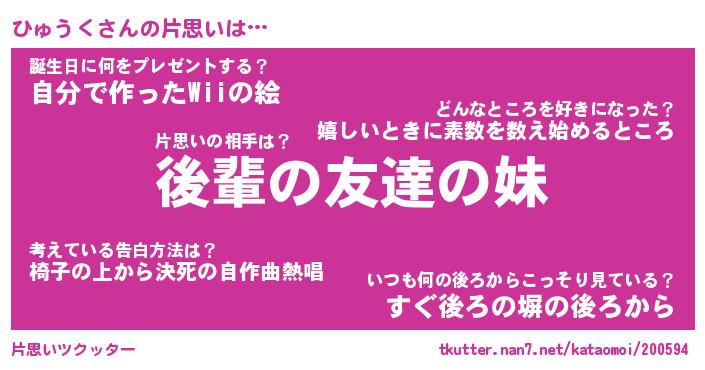 | ヒーロー風カッコイイあだ名 | 『スーパーヒュウク』『天弓騎士ヒュ』 |