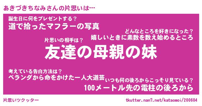 | ヘコむあだ名 | 『あきにー』『牛乳』『あきを』 |
