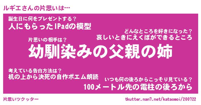 | ヘコむあだ名 | 『ルギふぇ~』『レバニラ』『ルギお』 |