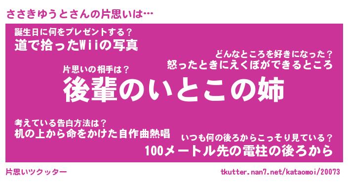 | ヒーロー風カッコイイあだ名 | 『スーパーササキユウト』『魔戒騎士ササ』 |