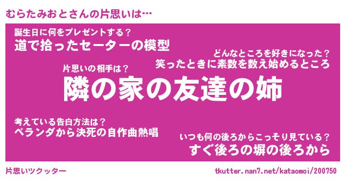 | 肩書あだ名 | 『むらたみおと御曹司』 |