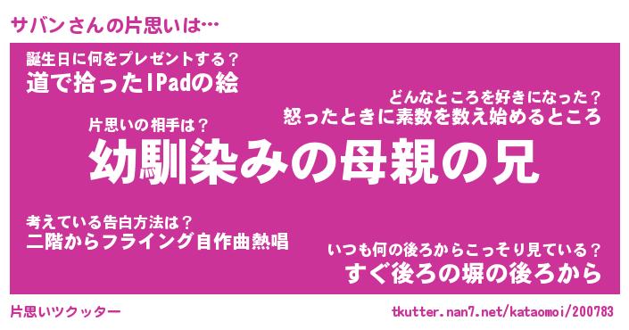 | 意味不明あだ名 | 『ペロリンサバン』『サバンフォーエバー』 |