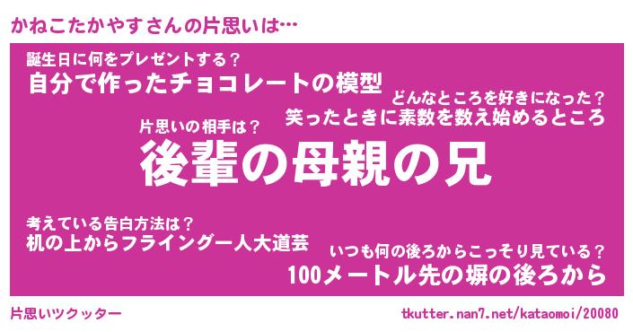 | 伝説のあだ名 | 『封印されし竜騎士かねこたかやす』 |