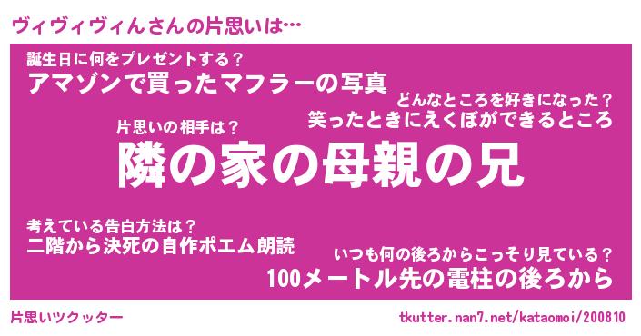 | 男性向けラノベタイトル風あだ名 | 『ヴィヴィヴィんの憂鬱』 |