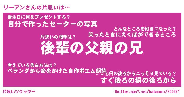 | 意味不明あだ名 | 『ペロリンリーアン』『永久保存リーアン』 |