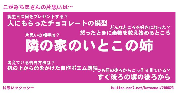 | 胡散臭い通販商品みたいなあだ名 | 『モテモテ間違いなし水晶球…その名も「こがみちほ」』 |