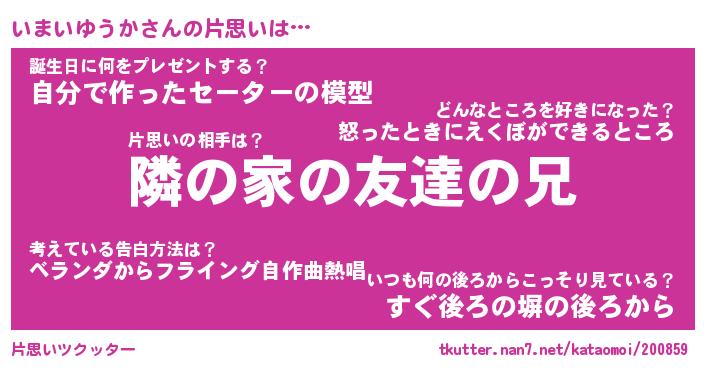 | 男性向けラノベタイトル風あだ名 | 『いまいゆうかの憂鬱』 |