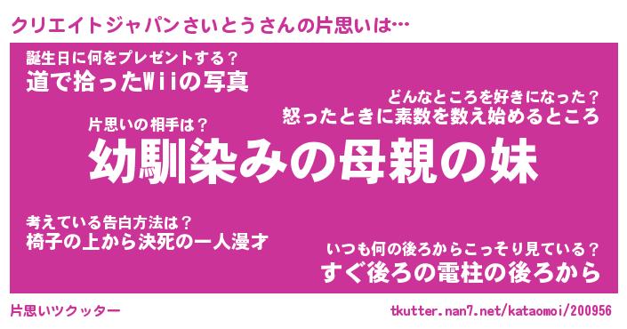 | 女子向けラノベタイトル風あだ名 | 『(仮)クリエイトジャパンさいとうのやんごとなき事情』 |