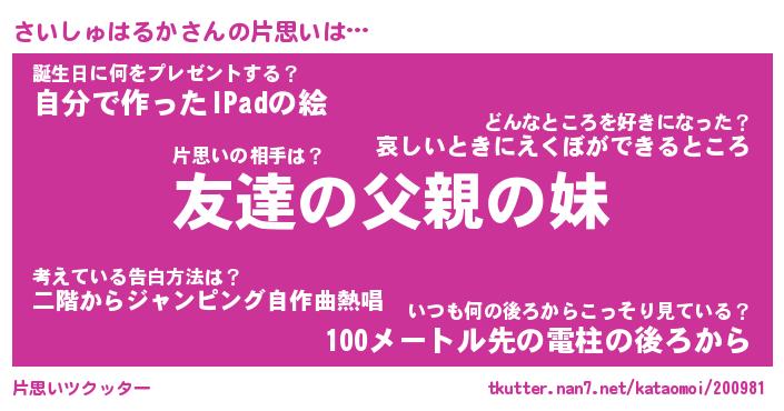 | 胡散臭い通販商品みたいなあだ名 | 『億万長者になれる水晶球…その名も「さいしゅはるか」』 |