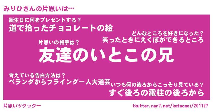 | 胡散臭い通販商品みたいなあだ名 | 『億万長者になれる水晶球…その名も「みりひ」』 |
