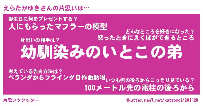 | 女子向けラノベタイトル風あだ名 | 『(仮)えらたかゆきのやんごとなき事情』 |