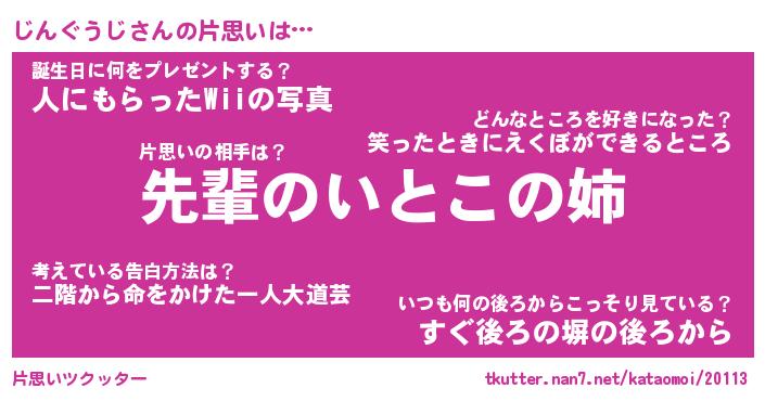 | 胡散臭い通販商品みたいなあだ名 | 『モテモテ間違いなし霊験あらたかなお札…その名も「じんぐうじ」』 |