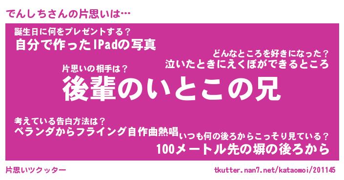 | ヘコむあだ名 | 『でんにゅー』『つくし』『でんっ子』 |