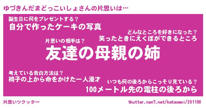 | 胡散臭い通販商品みたいなあだ名 | 『億万長者になれるブレスレット…その名も「ゆづきんだまどっこいしょ」』 |