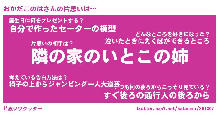 | ヘコむあだ名 | 『おかにゅー』『つくし』 |