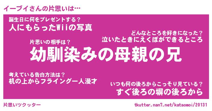 | ファンタジー風あだ名 | 『イーフェル』『エターナルイーブイー』 |