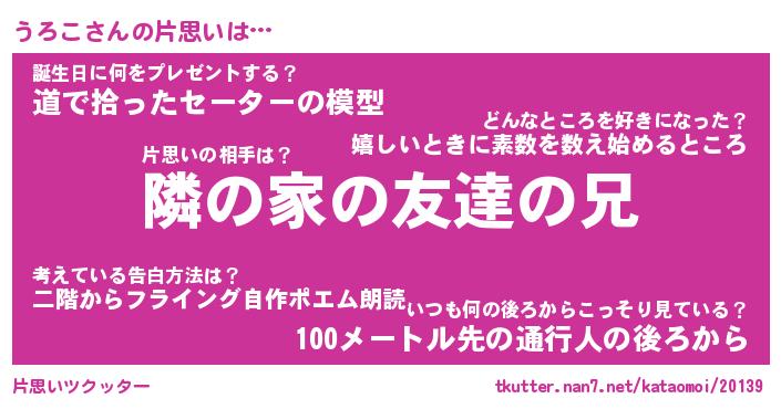 | ヘコむあだ名 | 『うろっふぃ~』『つくし』 |