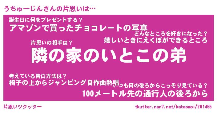 | 男性向けラノベタイトル風あだ名 | 『うちゅーじんの憂鬱』 |