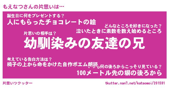 | 男性向けラノベタイトル風あだ名 | 『もえなつの憂鬱』 |