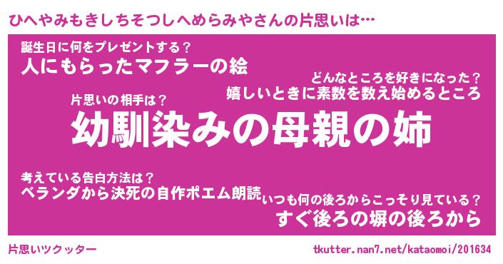 | ツイッター | ひへやみもきしちそつしへめらみやさんのツイッターID『konnyaku_man』 |