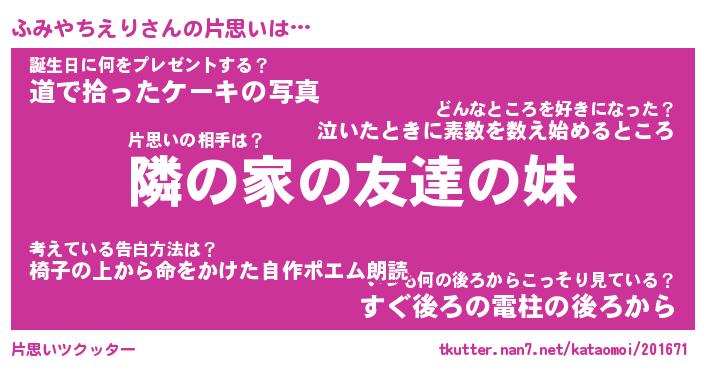 | 胡散臭い通販商品みたいなあだ名 | 『必ず成功する霊験あらたかなお札…その名も「ふみやちえり」』 |