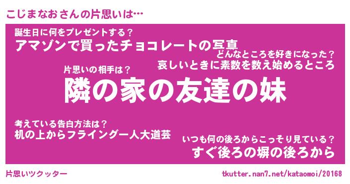 | 胡散臭い通販商品みたいなあだ名 | 『必ず成功する霊験あらたかなお札…その名も「こじまなお」』 |