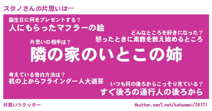 | 男性向けラノベタイトル風あだ名 | 『スタノの憂鬱』 |