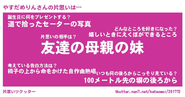 | 女子向けラノベタイトル風あだ名 | 『誰かこのやすだめりんを説明してください! ~契約から始まるウェディング~』 |