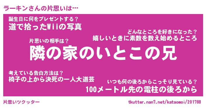 | ヘコむあだ名 | 『ラーもー』『豆乳』『ラーを』 |