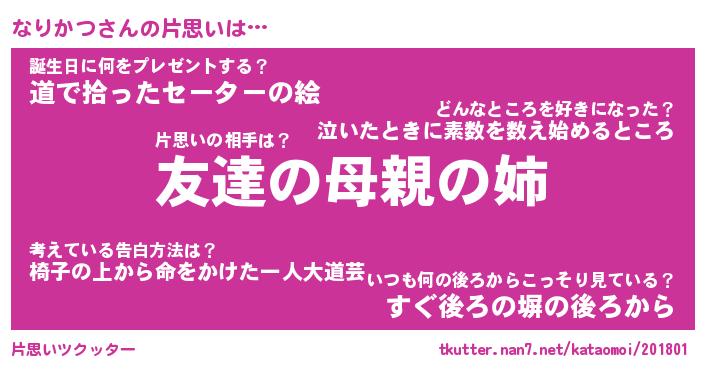| 意味不明あだ名 | 『ペロリンなりかつ』『永久保存なりかつ』 |