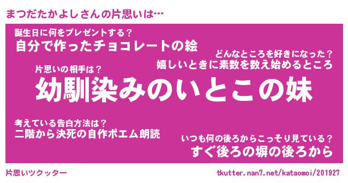 | ピコ太郎風あだ名 | 『マコ四郎』『ピマ太郎』『マツ五郎』 |