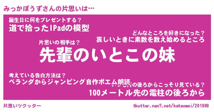 | 胡散臭い通販商品みたいなあだ名 | 『モテモテ間違いなし水晶球…その名も「みっかぼうず」』 |