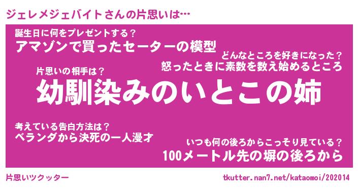 | 男性向けラノベタイトル風あだ名 | 『ジェレメジェバイトの憂鬱』 |