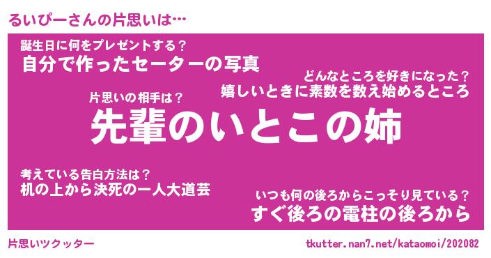 | ヘコむあだ名 | 『るいもー』『なまこ酢』『るいを』 |