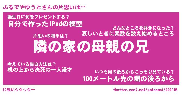 | 胡散臭い通販商品みたいなあだ名 | 『必ず成功するブレスレット…その名も「ふるでやゆうと」』 |