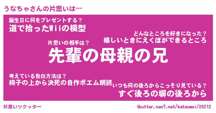 | ポケモン風あだ名 | 『ウナチュウ』『ウナチダネ』 |