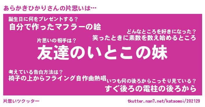 | 意味不明あだ名 | 『ペロリンあらかきひかり』 |