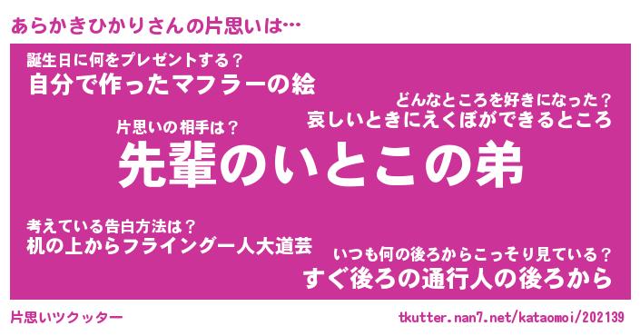 | 女子向けラノベタイトル風あだ名 | 『あらかきひかり姫と円卓の騎士』 |