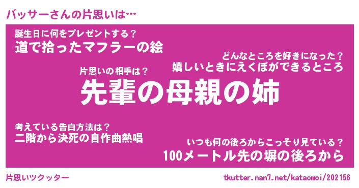 | ヘコむあだ名 | 『バッふぇ~』『豆乳』『バッ太郎』 |