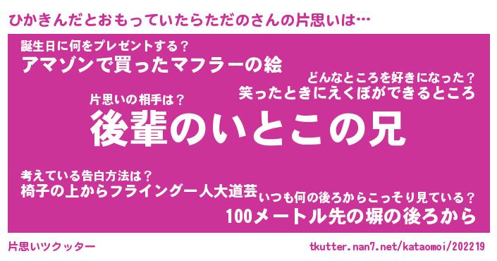 | 胡散臭い通販商品みたいなあだ名 | 『モテモテ間違いなし霊験あらたかなお札…その名も「ひかきんだとおもっていたらただの」』 |