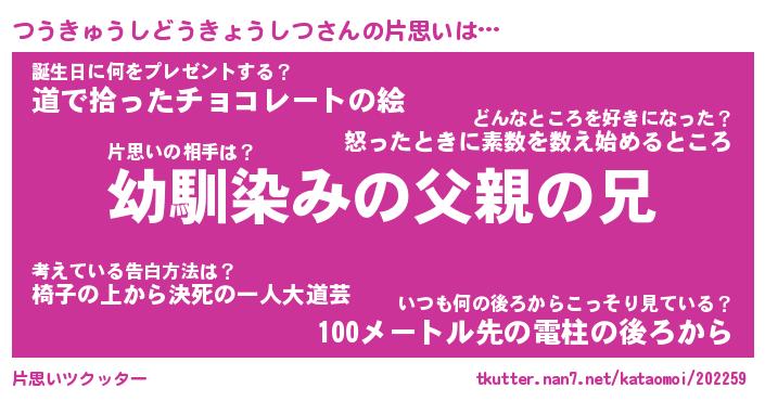 | 男性向けラノベタイトル風あだ名 | 『つうきゅうしどうきょうしつの憂鬱』 |