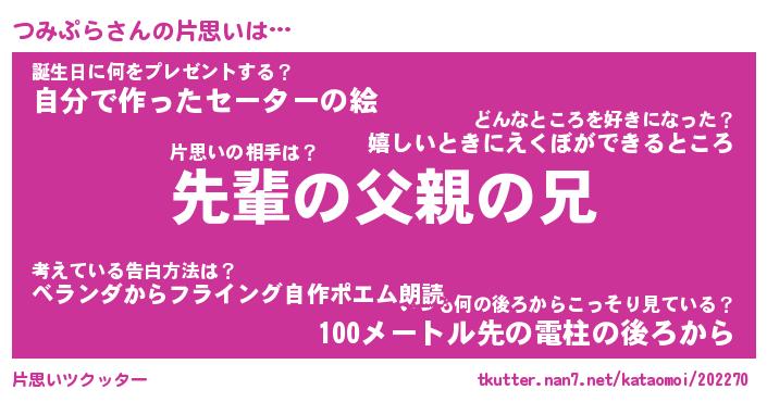 | ポケモン風あだ名 | 『ツミチュウ』『ツミプダネ』 |