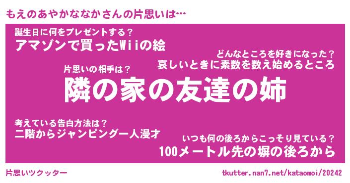 | 胡散臭い通販商品みたいなあだ名 | 『必ず成功する霊験あらたかなお札…その名も「もえのあやかななか」』 |