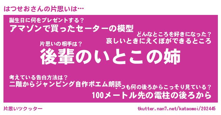 | ポケモン風あだ名 | 『ハツチュウ』『ハツセダネ』 |