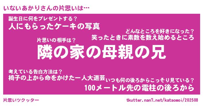 | 男性向けラノベタイトル風あだ名 | 『いないあかりの憂鬱』 |