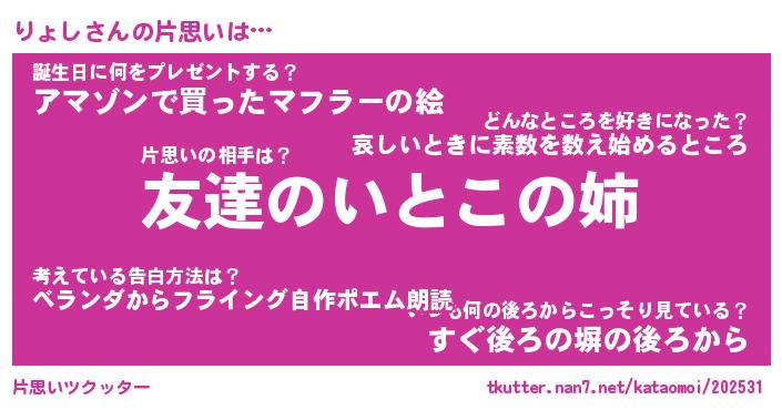 | ヘコむあだ名 | 『りょもー』『なまこ酢』『りょ太郎』 |