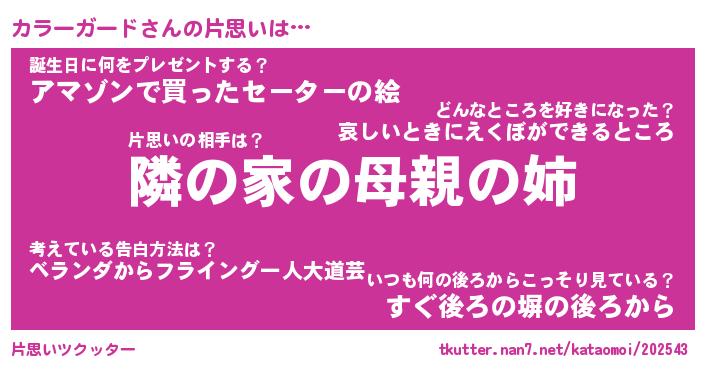 | ヒーロー風カッコイイあだ名 | 『スーパーカラーガード』『幻影騎士カラ』 |