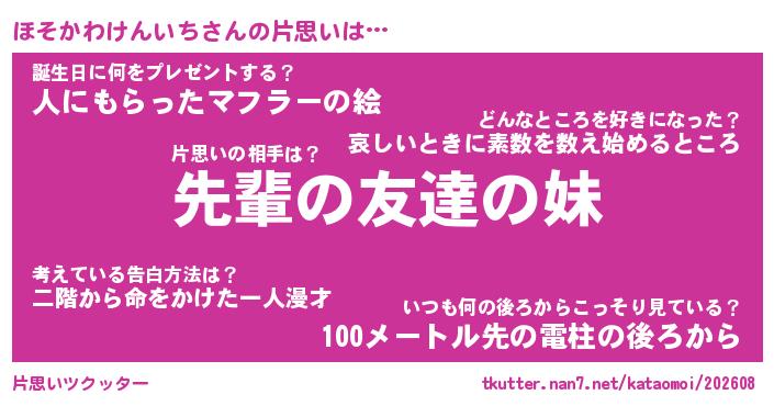 | 胡散臭い通販商品みたいなあだ名 | 『モテモテ間違いなし霊験あらたかなお札…その名も「ほそかわけんいち」』 |