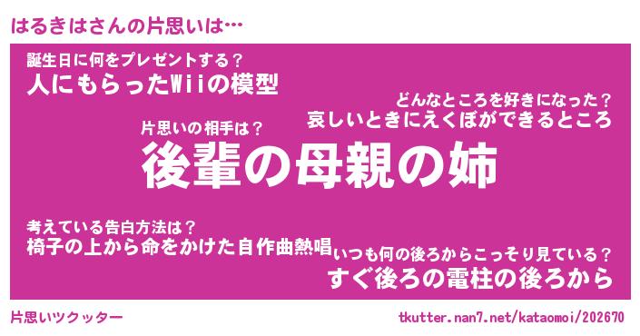 | 意味不明あだ名 | 『ペロリンはるきは』『永久保存はるきは』 |